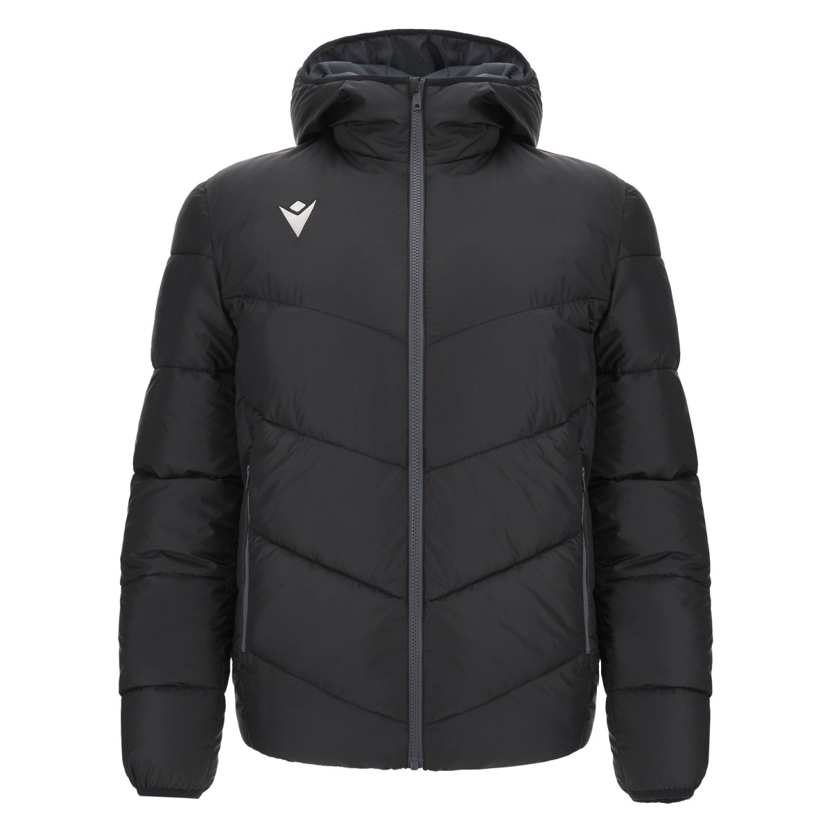 Gequild jas met capuchon gemaakt van ultralichte ulight vezelstof. Met een full -length diecast centrale zip compleet met een ritssluiting met de rubberised Macron Hero. Zakken met diecast ritsen. De manchetten en vouwkap in kraag zijn lycra -rand.